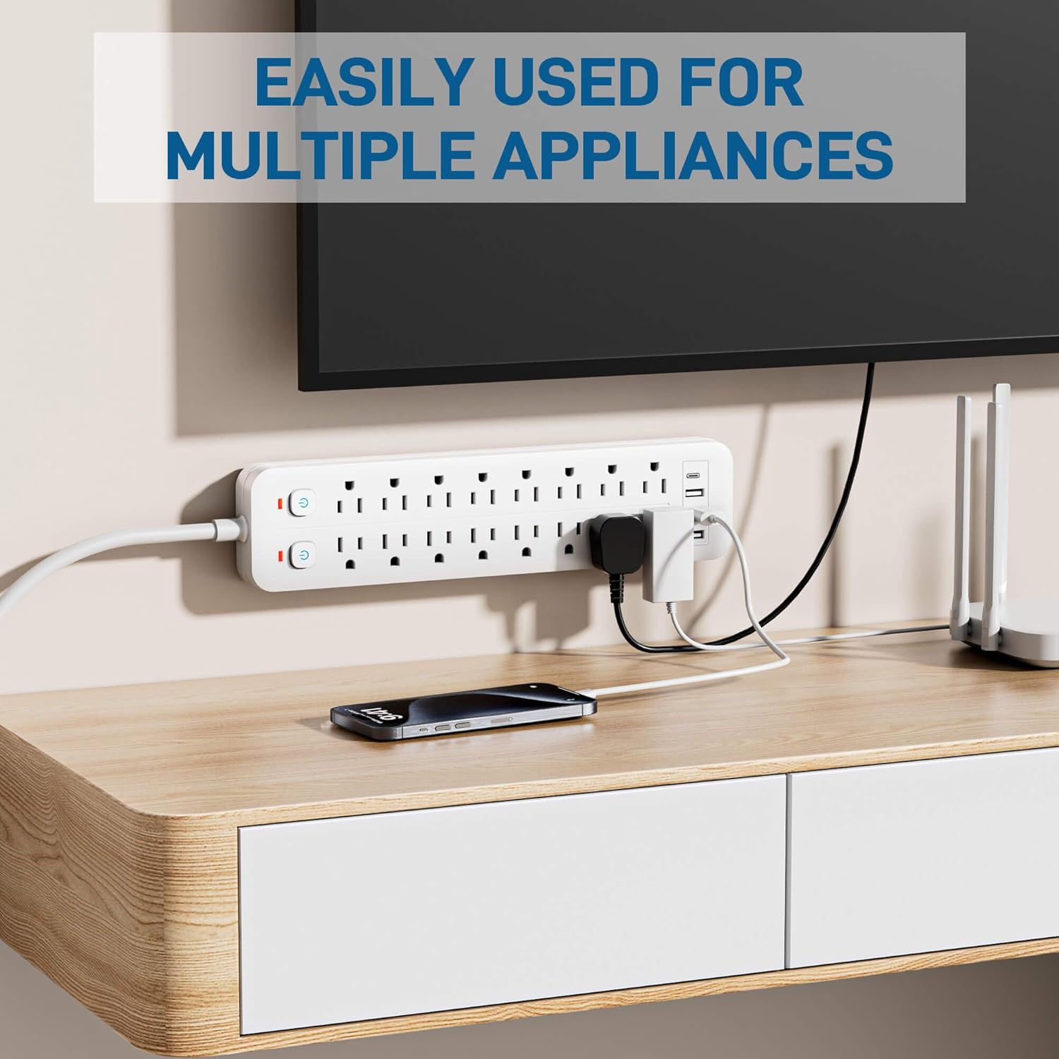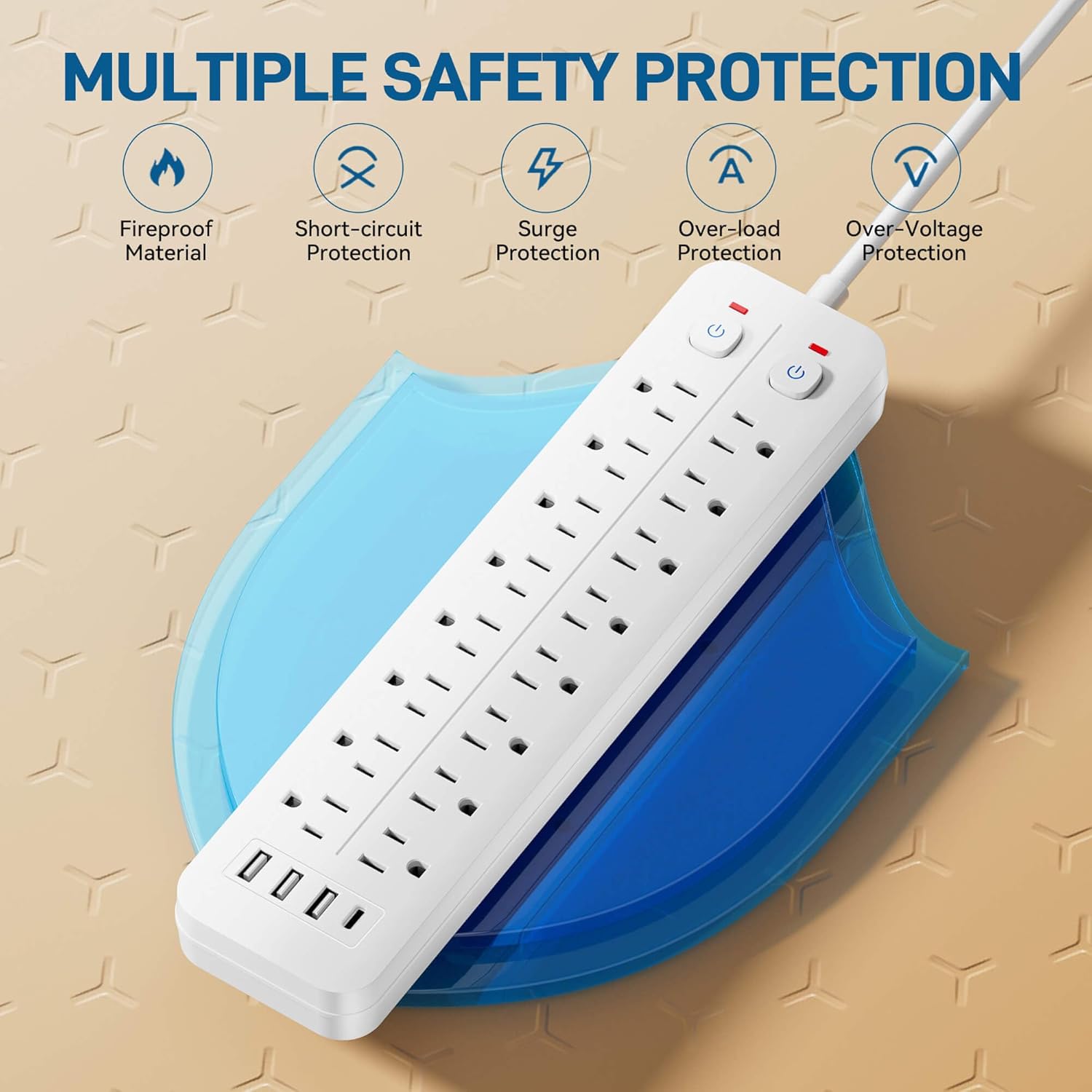 17-in-1 Power for All: JouleLoom surge protector power strip features 11 AC outlets and 4 USB (2 USB C) charging ports, allowing power up to 17 devices simultaneously. Its compact design saves space, making it essential for any home, office, or dorm room