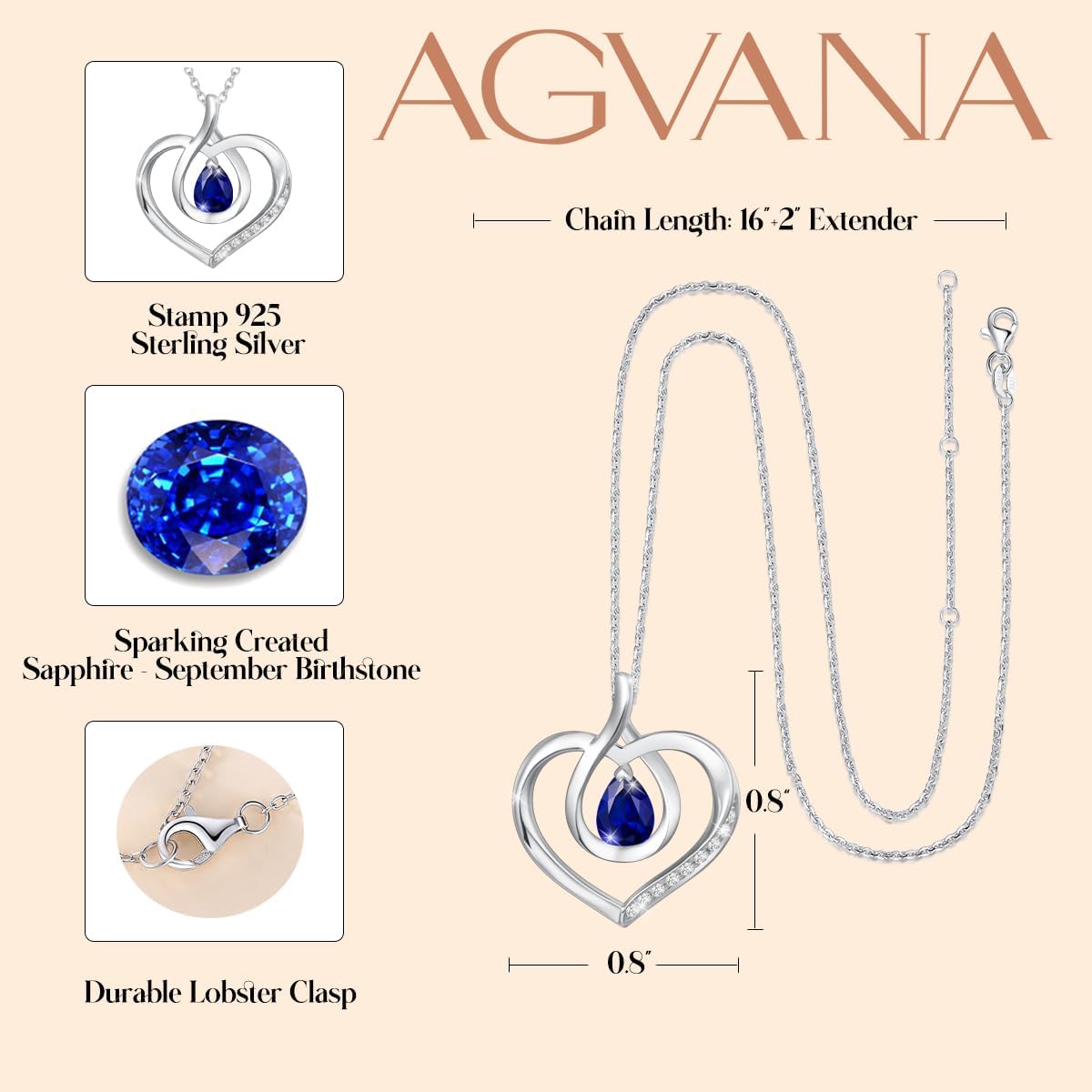 AGVANA Heart Birthstone Necklace for Women Sterling Silver Genuine or Created Gemstone Forever Love Pendant Necklace Fine Jewelry Anniversary Birthday Gifts for Women Mom Wife