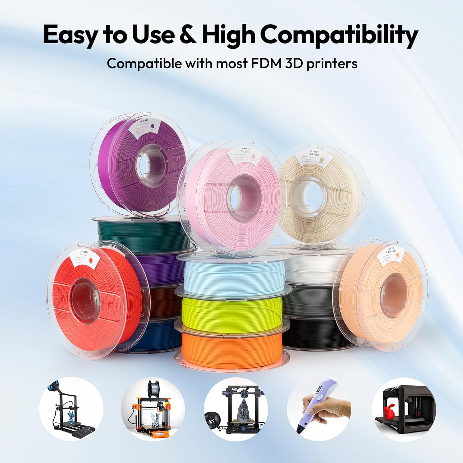 Customers find the 3D printing filament performs well, with one noting it's ideal for both detailed models and larger prints. The filament receives positive feedback for its color quality, with one customer highlighting its natural skin-like shade, and they appreciate its functionality and value for money. The adhesion and stringing aspects receive mixed reviews - while some say it always sticks to the bed and has very little stringing issues, others report poor adhesion and frequent tangling. The filament's brittleness is a concern, with customers noting it breaks to the touch and has brittle areas that snap off.