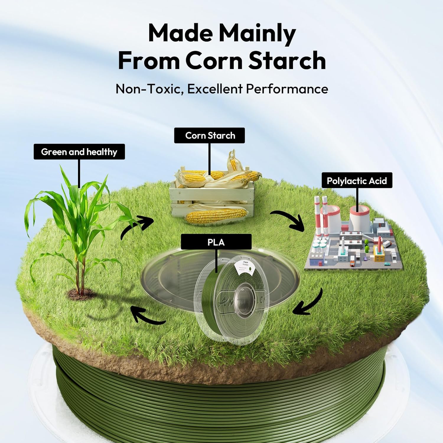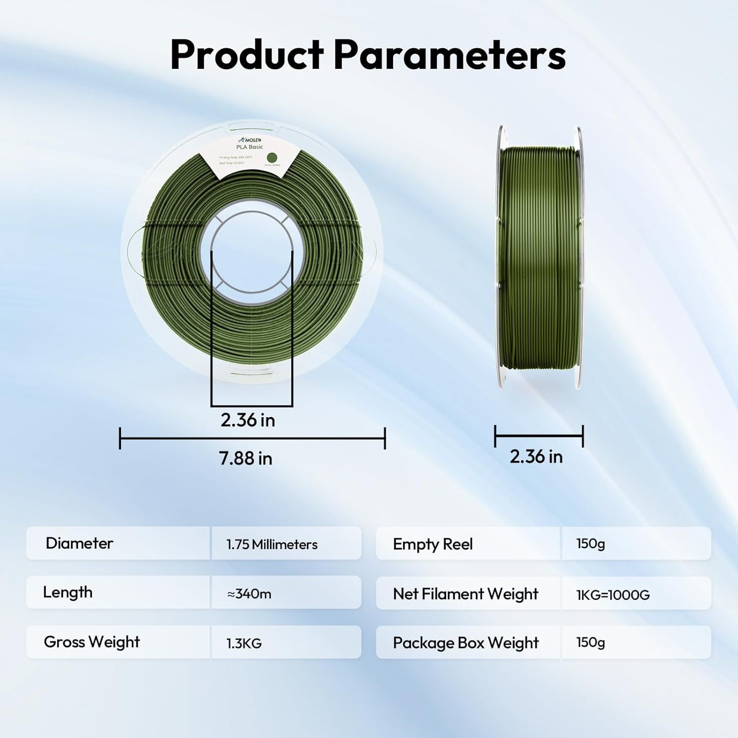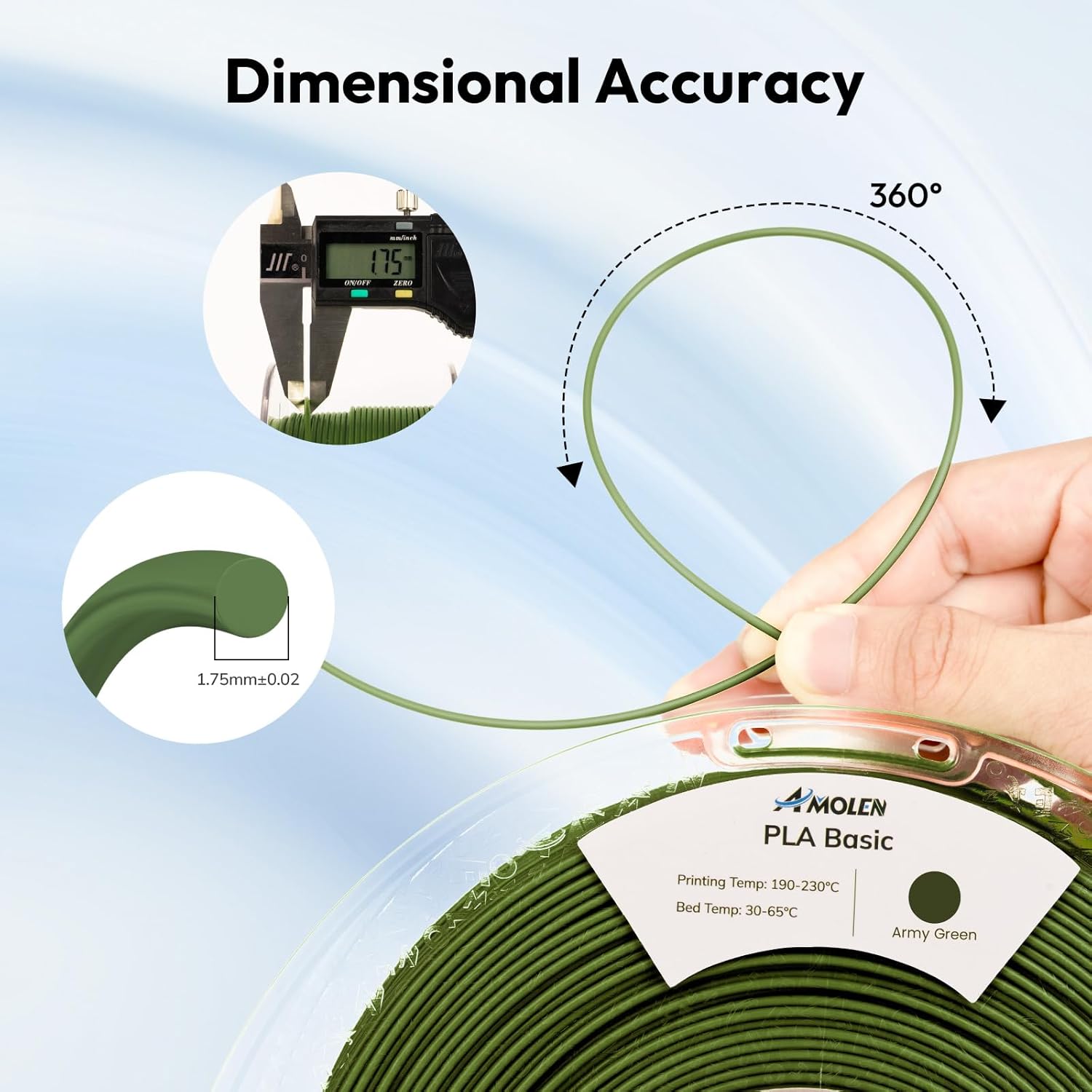 AMOLEN 3D Printer Filament PLA, True High Speed 600mm/s 1.75mm PLA Filament Army Dark Green (Olive) PLA, 1KG/2.2lb, Dimensional Accuracy +/- 0.02 mm, Smooth & Non-Tangle, Fits for Most FDM 3D Printer