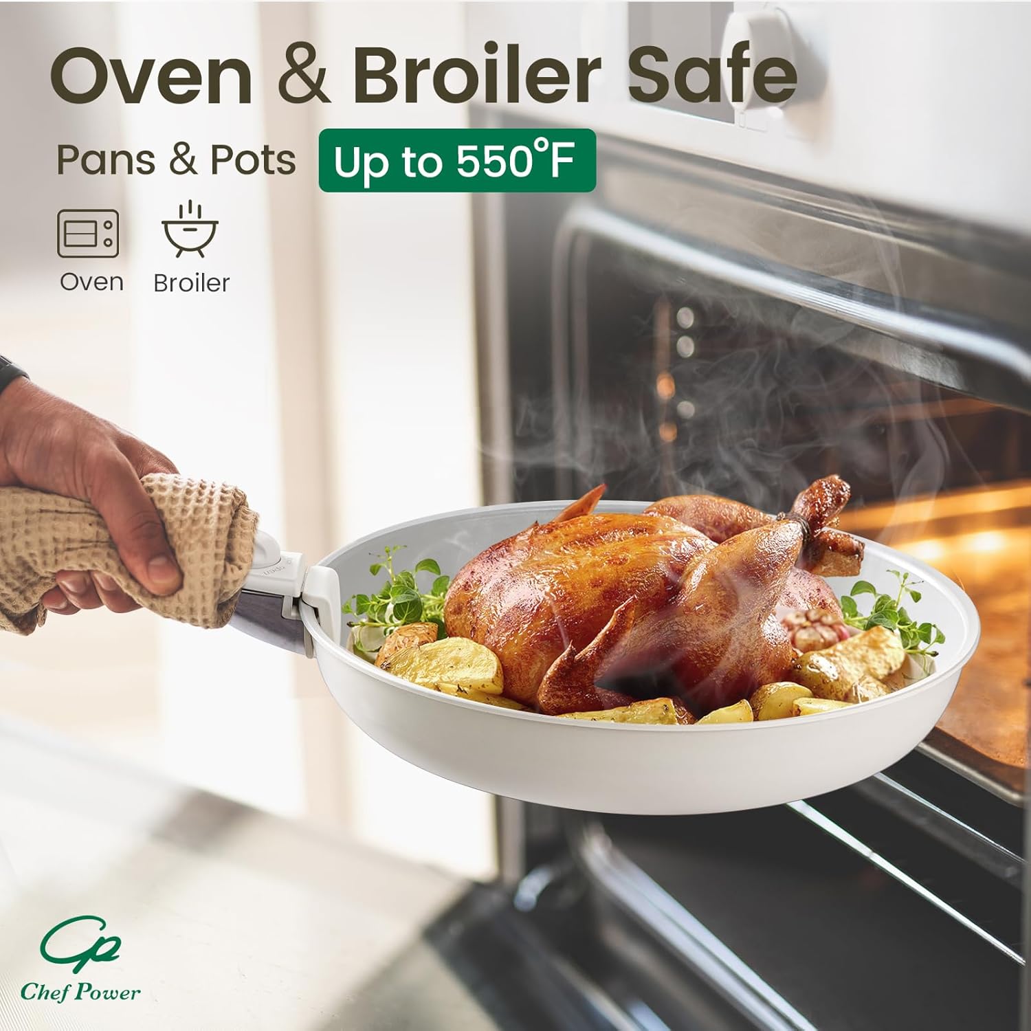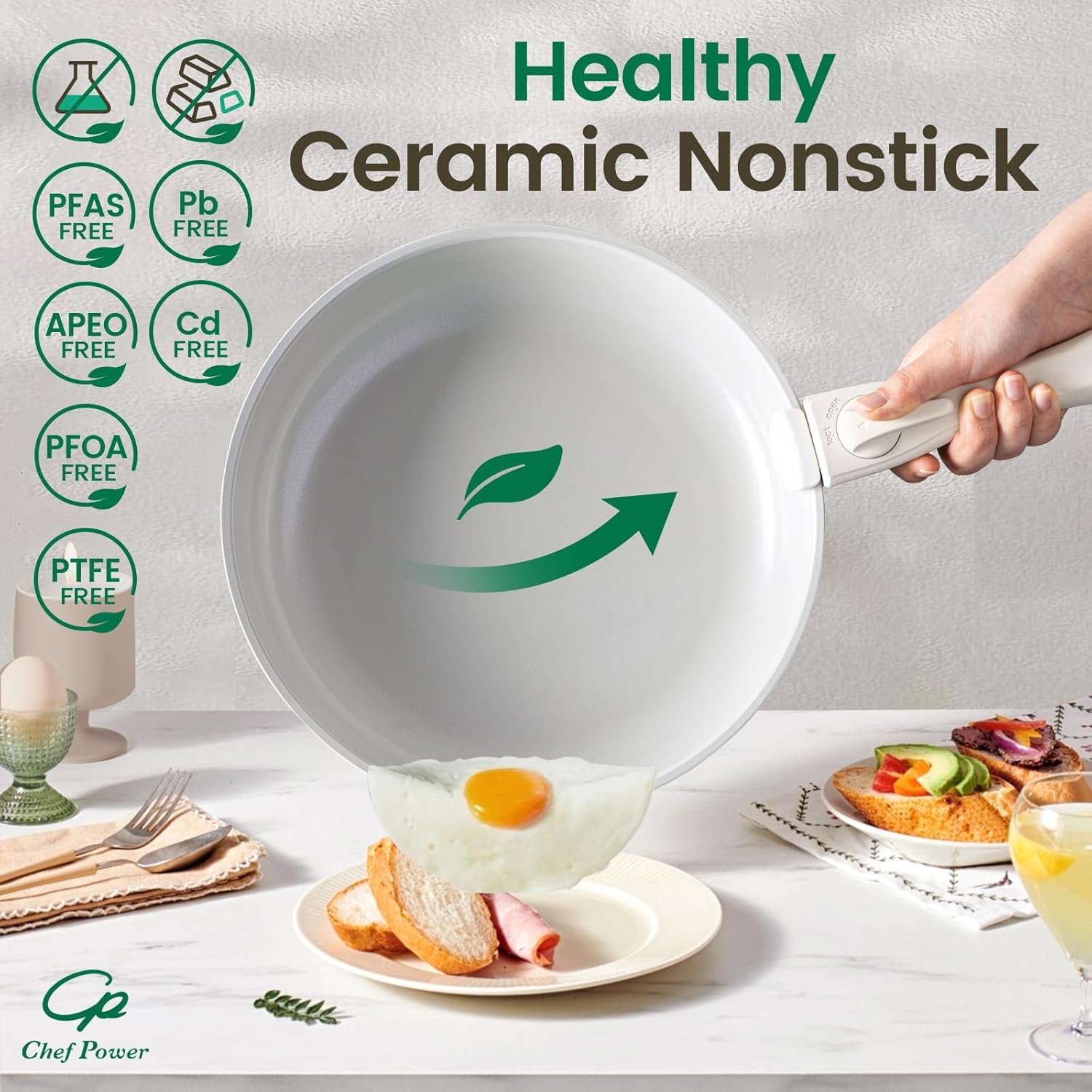 Easy To Clean - Chef Power pans and pots set is designed with ceramic nonstick throughout, support dishwasher and handwash.
