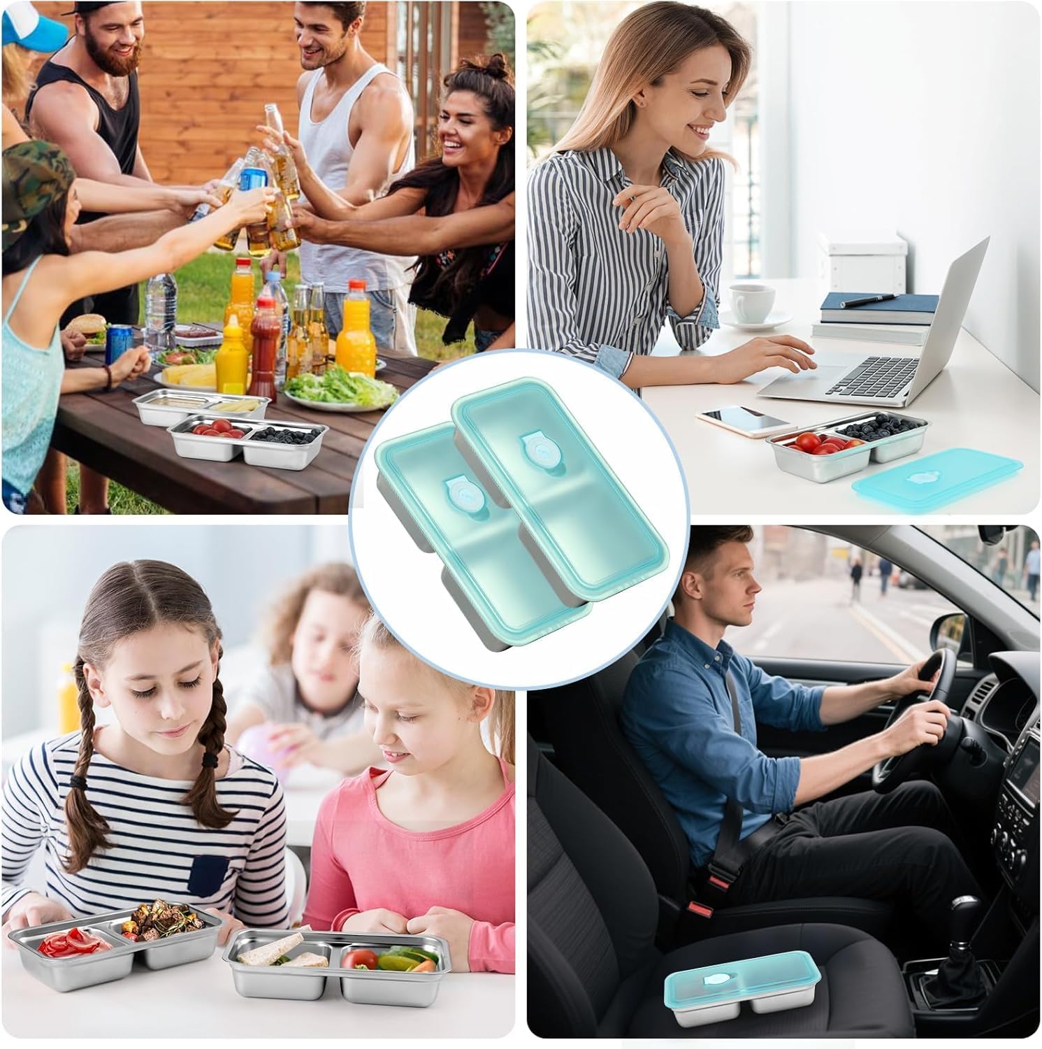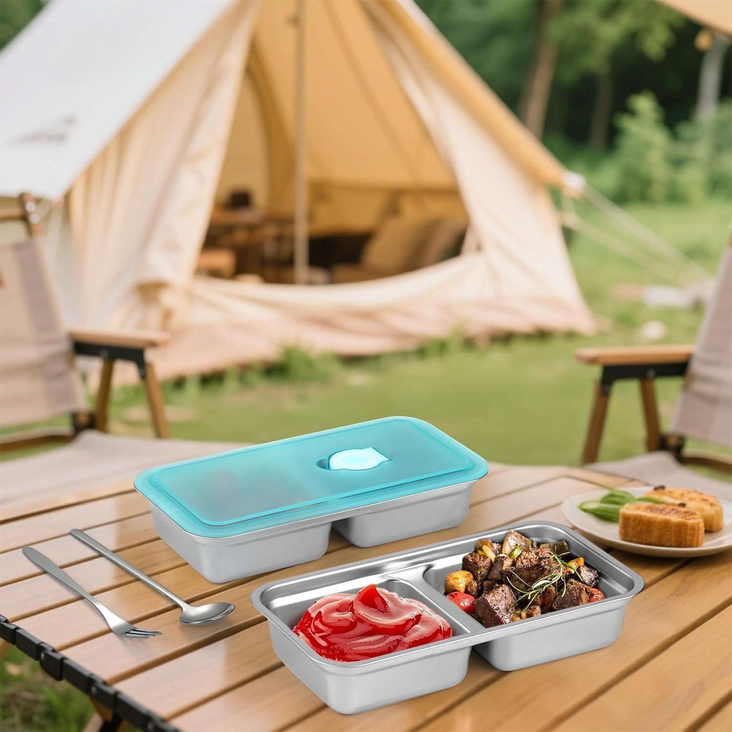 Grab and Go Snack Containers, Reusable Double Compartment Snack Containers-Stainless Steel Condiment Box with Lids for Outdoor Camping Food Storage (2)