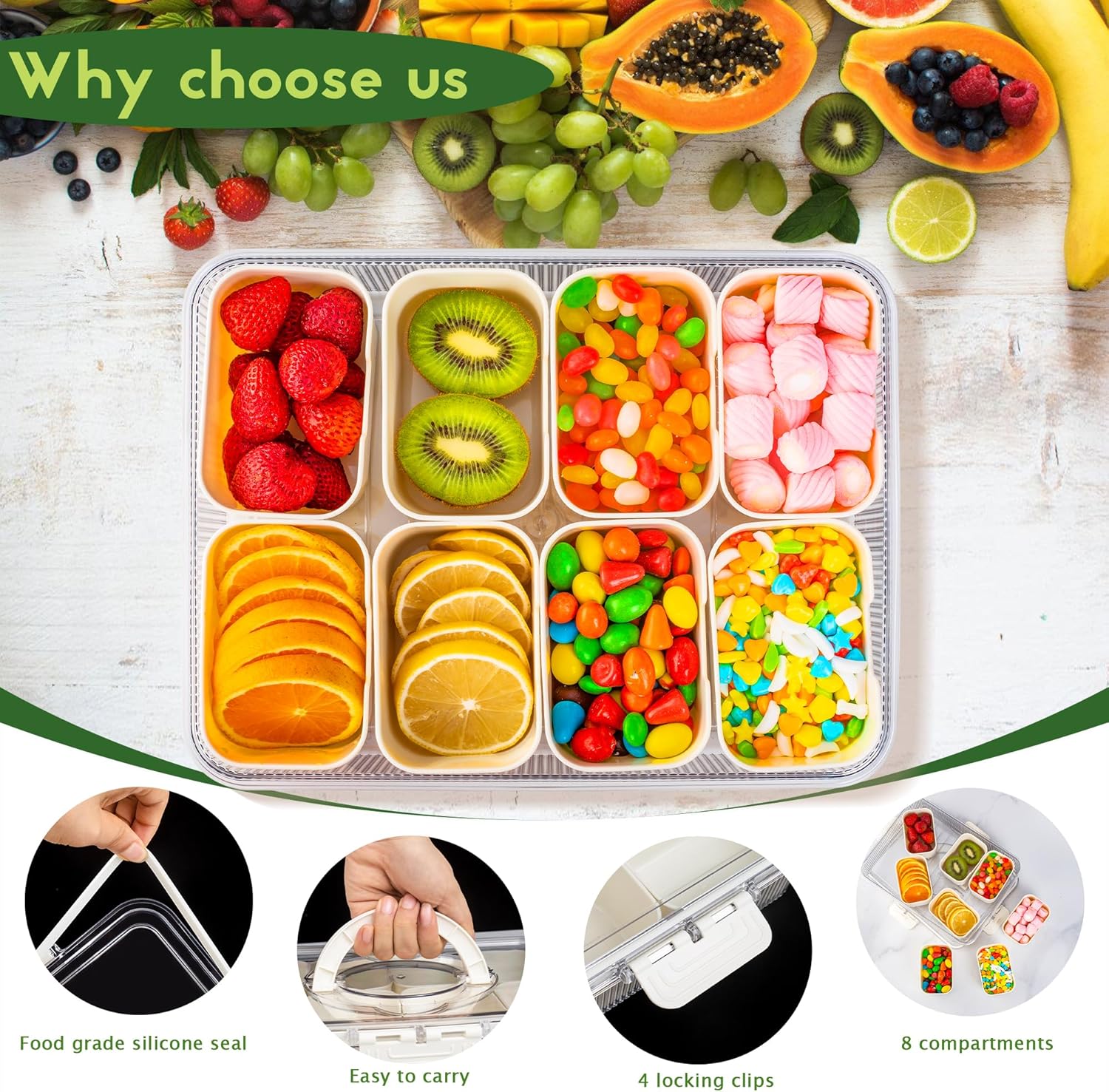 MULTIPLE COMPARTMENTS - Travel snack container comes with 8 removable compartments, you can fill snackle box charcuterie container with different fruits, charcuterie, veggie, candy, vegetable, food and more, perfect for carrying kids and adults favorite snacks.