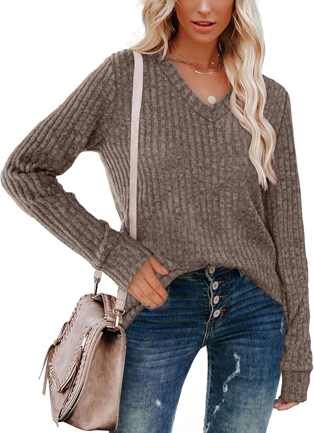 Sampeel V Neck Long Sleeve Shirts for Women Casual Fall Tops Lightweight Tunic Sweaters Fashion Clothes Loose Fit 2025