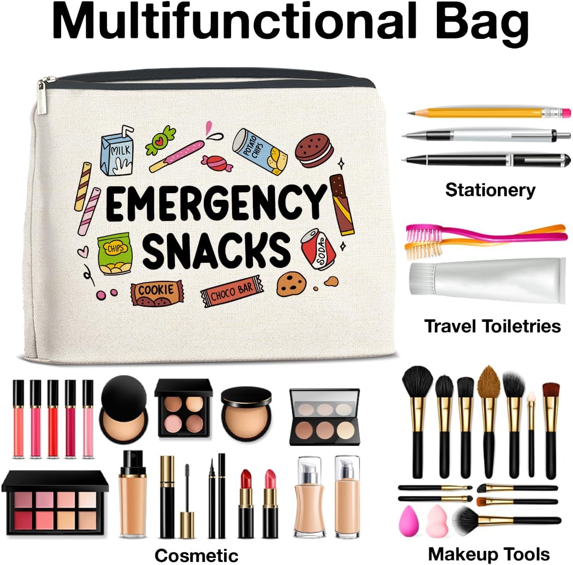 Snack Lover Gifts for Women, Foodie Gifts Makeup Bag, Emergency Snacks Zipper Makeup Pouch