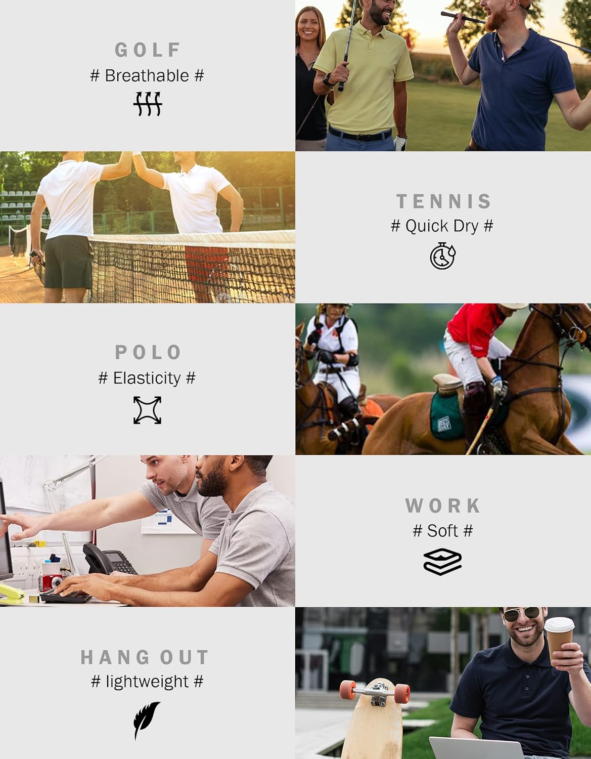 TELALEO 4/5 Pack Mens Polo Shirts Quick Dry Short Sleeve Golf T Shirt Performance Moisture Wicking Casual Workout